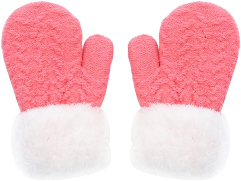 INOGIH Kids Toddlers Winter-Warm-Knit-Mittens 2-6TSoft-Elastic Thick-Lined Gloves for Cold Weather