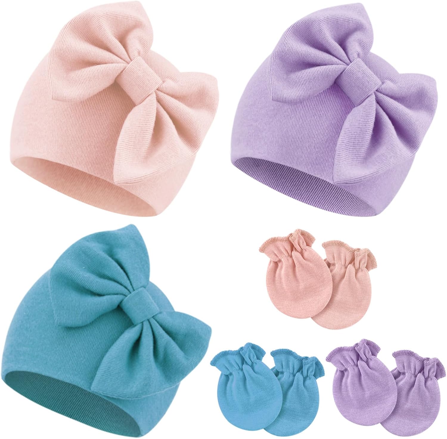 Newborn Baby Hats and Mittens Set Infant Bow Beanie Cap Toddler Gloves Newborn Hospital Hats for Baby Boy Girl Kid 0-6 Months