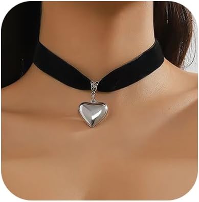 Black Choker Necklace Chunky Heart Pendant Necklace Black Velvet Collar Necklace Y2K Trendy Jewelry Gifts for Women