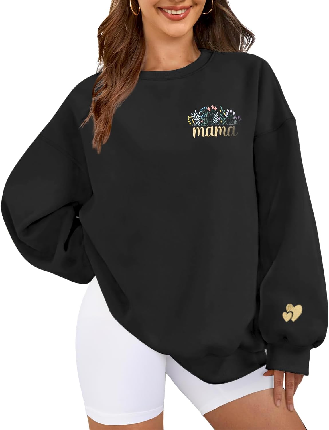 HEYTALALA Mama Sweatshirt for Women Oversized Crewneck Pullover Hoodies Graphic Tops Long Sleeve Mom Shirts