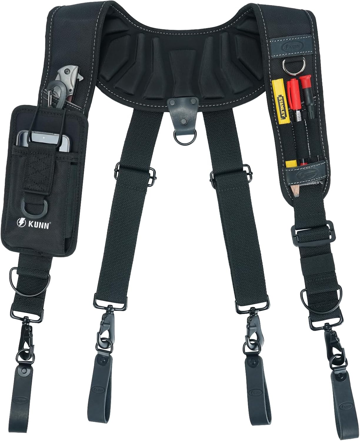 - HEAVY DUTY:The KUNN leather tool belt suspender is constructed from top-grain cowhide leather and premium 1680D material,with heavy-duty trigger hooks and stitching to support your work to the end.