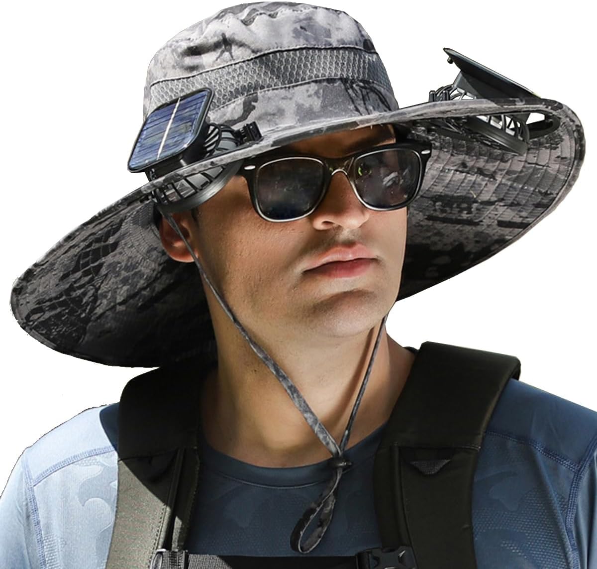 Solar Fan Hat, Wide Brim Sun Hat with 2 Solar Fan Large, USB UPF 50+ Fishing Cap with Fans Built in for Men Women