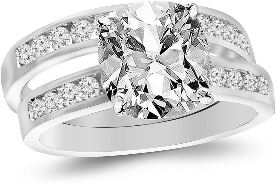 Houston Diamond District 1.75 Carat LAB GROWN DIAMOND Classic Channel Set Wedding Set Bridal Band & Cushion Cut Diamond Engagement Ring (D-E Color VS1-VS2 Clarity 1 Ct Center)