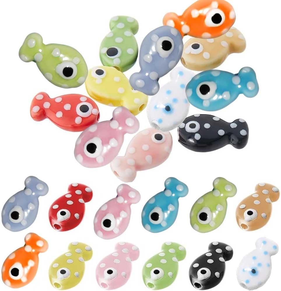 - 60Pcs: You will receive 60pcs porcelain ceramic fish beads with 12 colors to choose from,5pcs of each color,about 11mm long,20mm wide,enough quantity to meet your various needs.