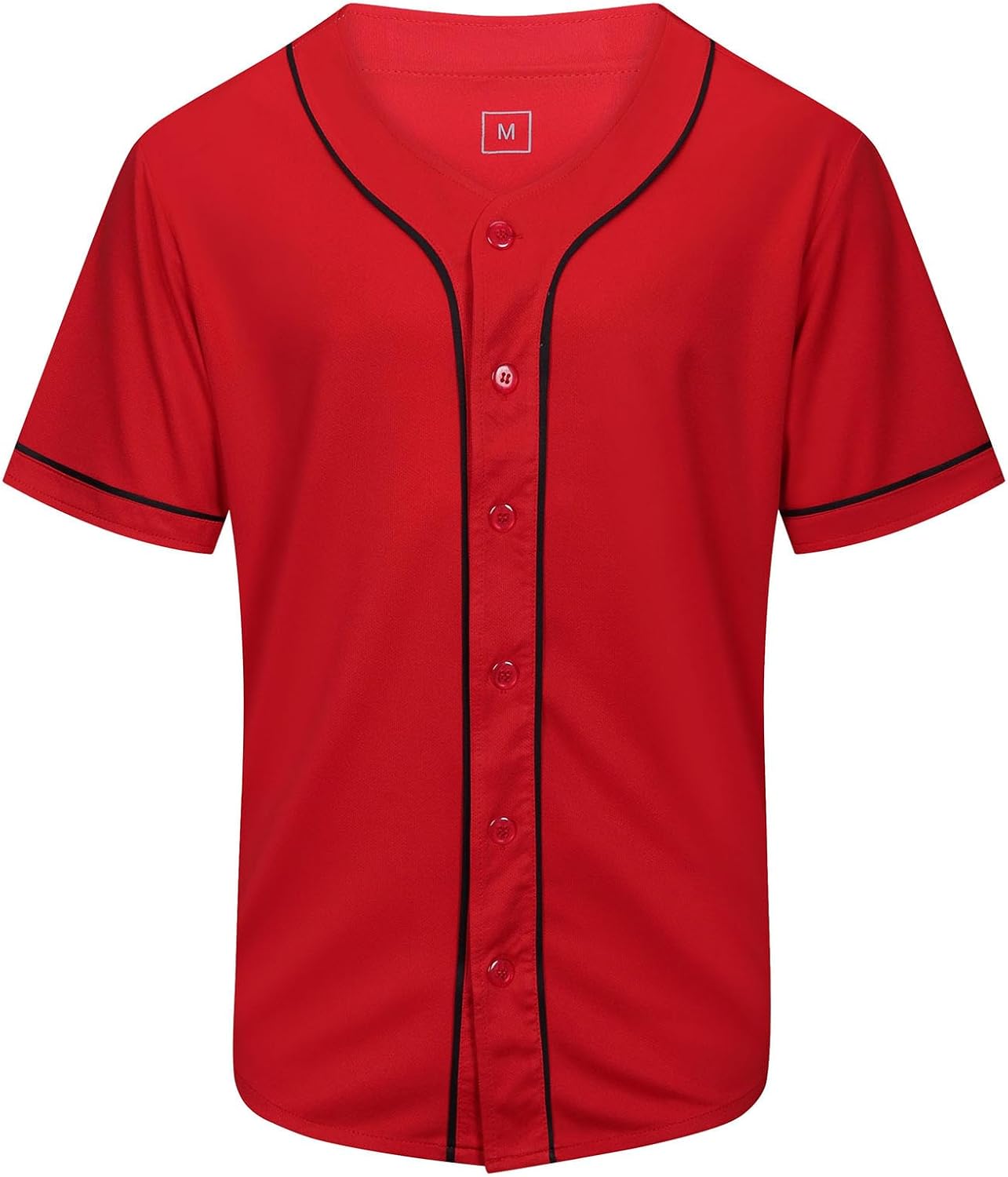 Blank Plain Baseball Jersey Shirt, Short Sleeve Button Down Shirts, Hip Hop Sports Uniform for Men and Women Adult