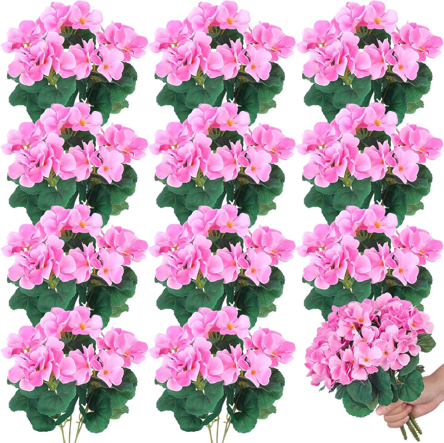 - Versatile and DIY Friendly: these artificial geraniums for outdoors don't just decorate, they inspire; With their bendable stems, you can arrange them as you please, creating a custom arrangement specific to your taste; So whether you prefer them in a vase, pots, hanging baskets, or as part of your outdoor decor, these flowers enhance the beauty of any setting they are in