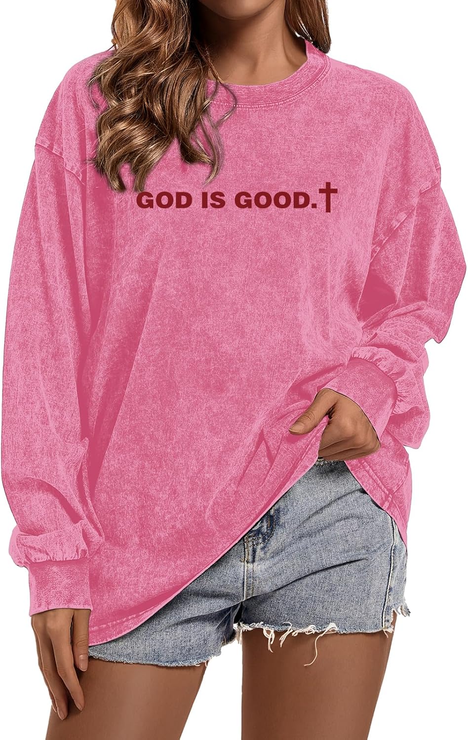 BeWithYou Christian God is Good Shirts for Women Religious Jesus Faith Tshirt Inspirational Bible Verse Long Sleeve Tees Tops