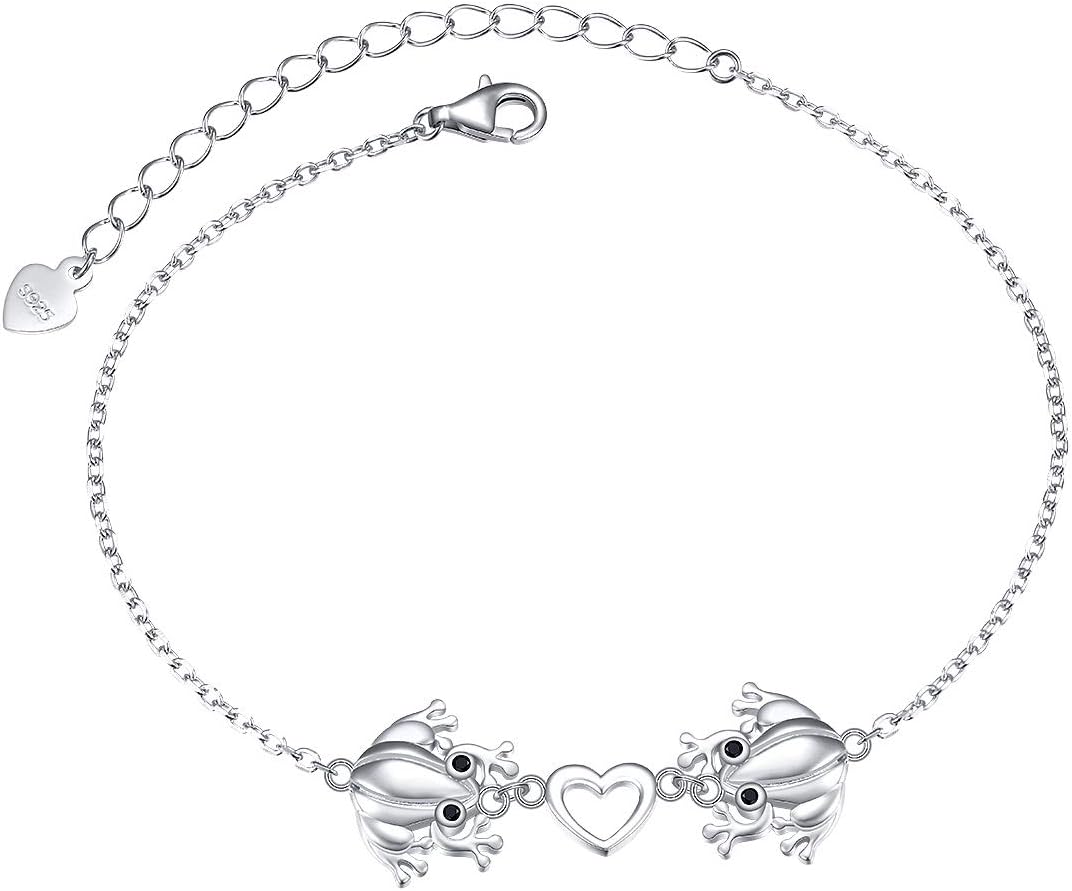 S925 Sterling Silver Frog Link Animal Heart Toad Bracelet for Women Jewelry