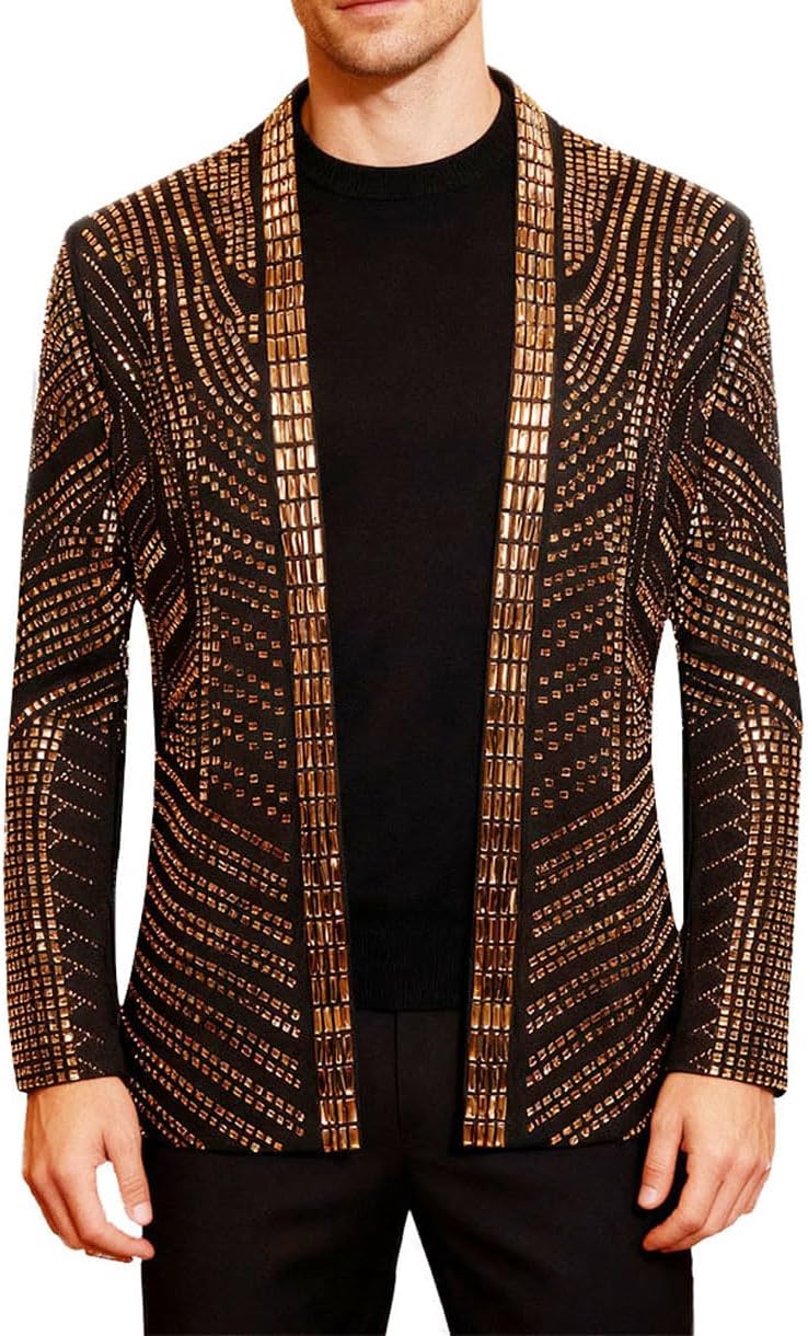 Men's Black and Gold Sequined Wedding Performance Party high-end Fitted Luxurious Full Sequin Suit Jacket
