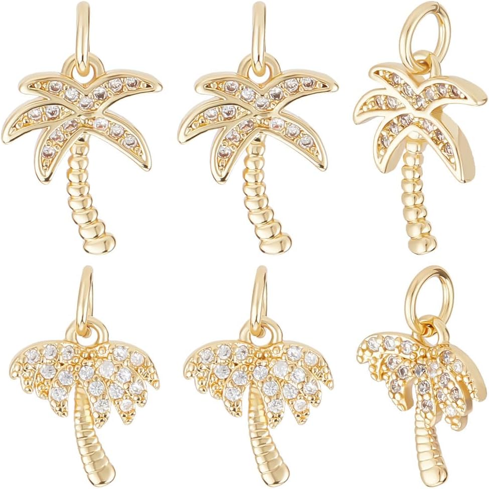 Beebeecraft 1 Box 8Pcs Mixed Style Brass Golden Coconut Tree Charms Micro Pave Cubic Zirconia Pendants Mini Platinum with Jump Ring for Necklace Earrings Jewelry Making Findings on Halloween