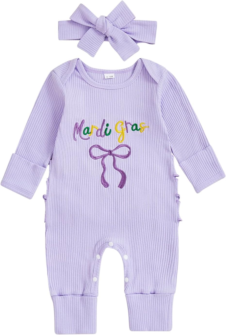 My First Mardi Gras Onesie Baby Girl Outfit Newborn Carnival Long Sleeve Jumpsuit Ribbed Knit Romper 0-18M