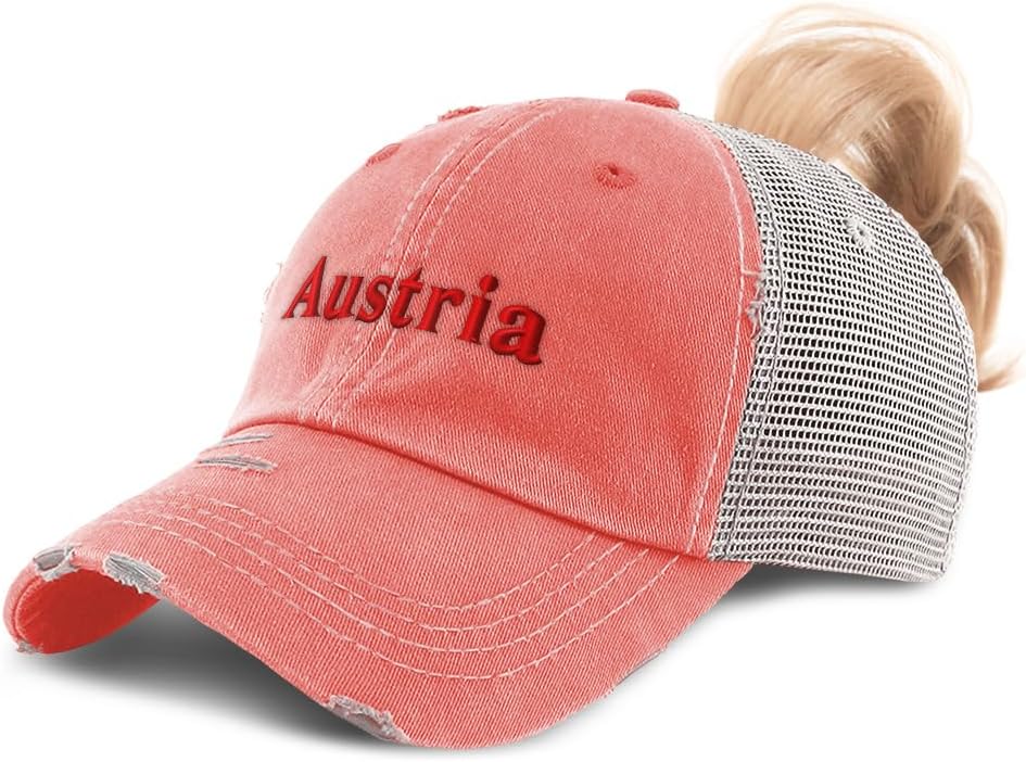 Speedy Pros Ponytail Cap Women's Baseball Cap Embroidered Austria Austrian Deutsch Sterreich Vienna Cotton
