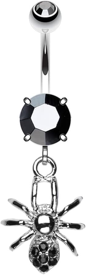 Pierced Owl 14GA Stainless Steel Black CZ Crystal Gothic Spider Dangling Belly Button Ring