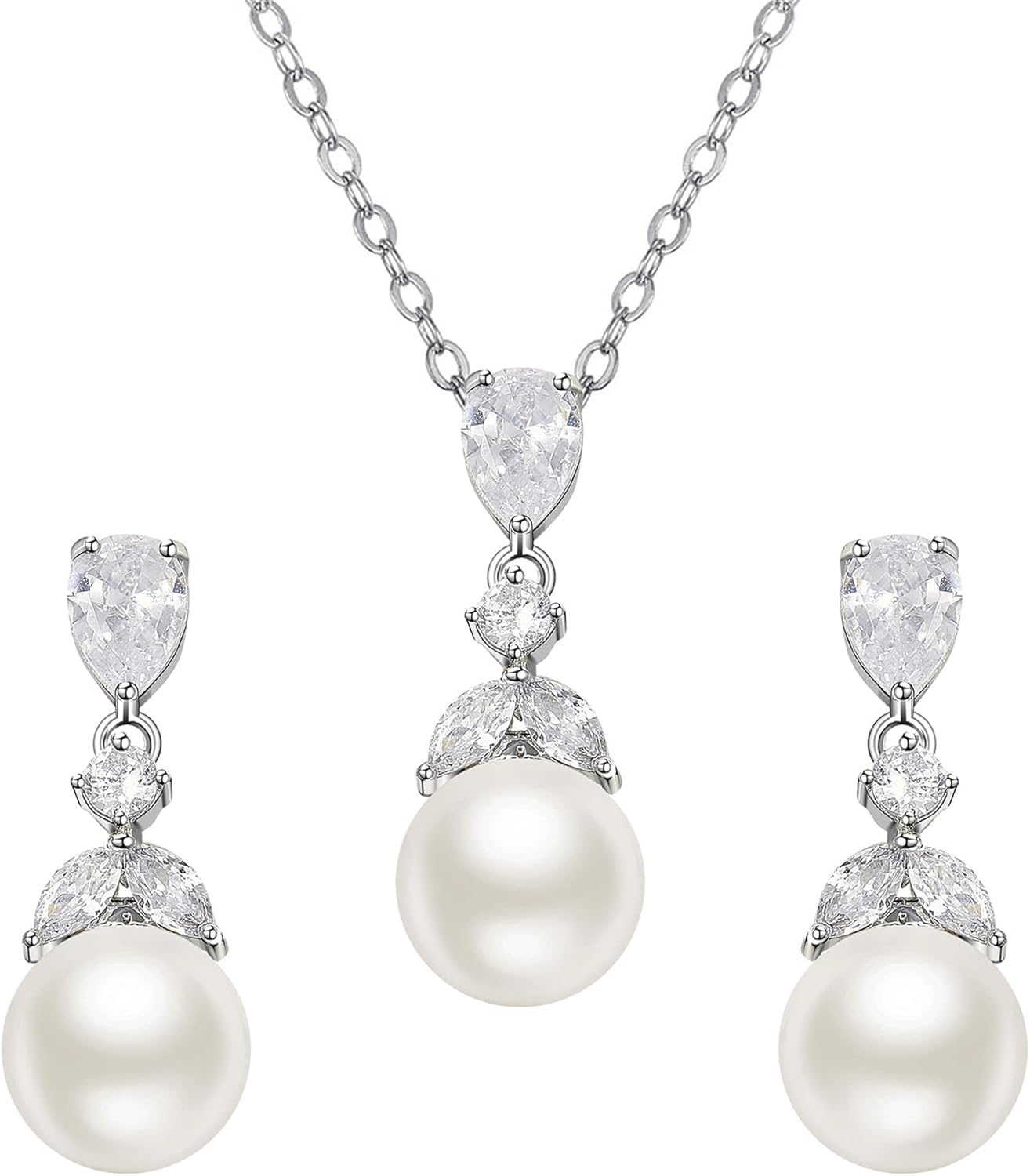 SWEETV Pearl Wedding Jewelry Set For Brides, Cubic Zirconia Wedding Necklace and Earrings Set, Elegant Bridal Jewelry Set for Women Bridesmaids Prom