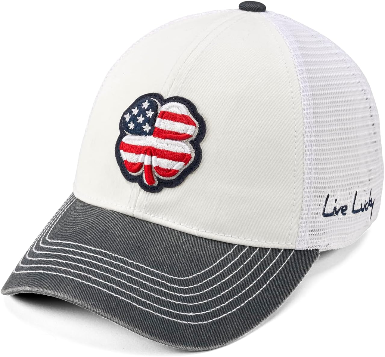 Black Clover, Unisex, USA 2T Vintage 3 Adjustable Hat, White Hat/3D USA Flag Clover, One Size