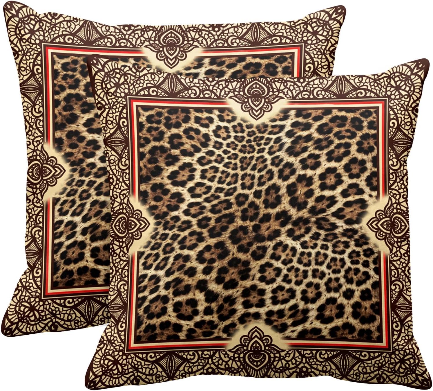 - Set of 2 decorative square throw pillow covers made of soft polyester with leopard print design