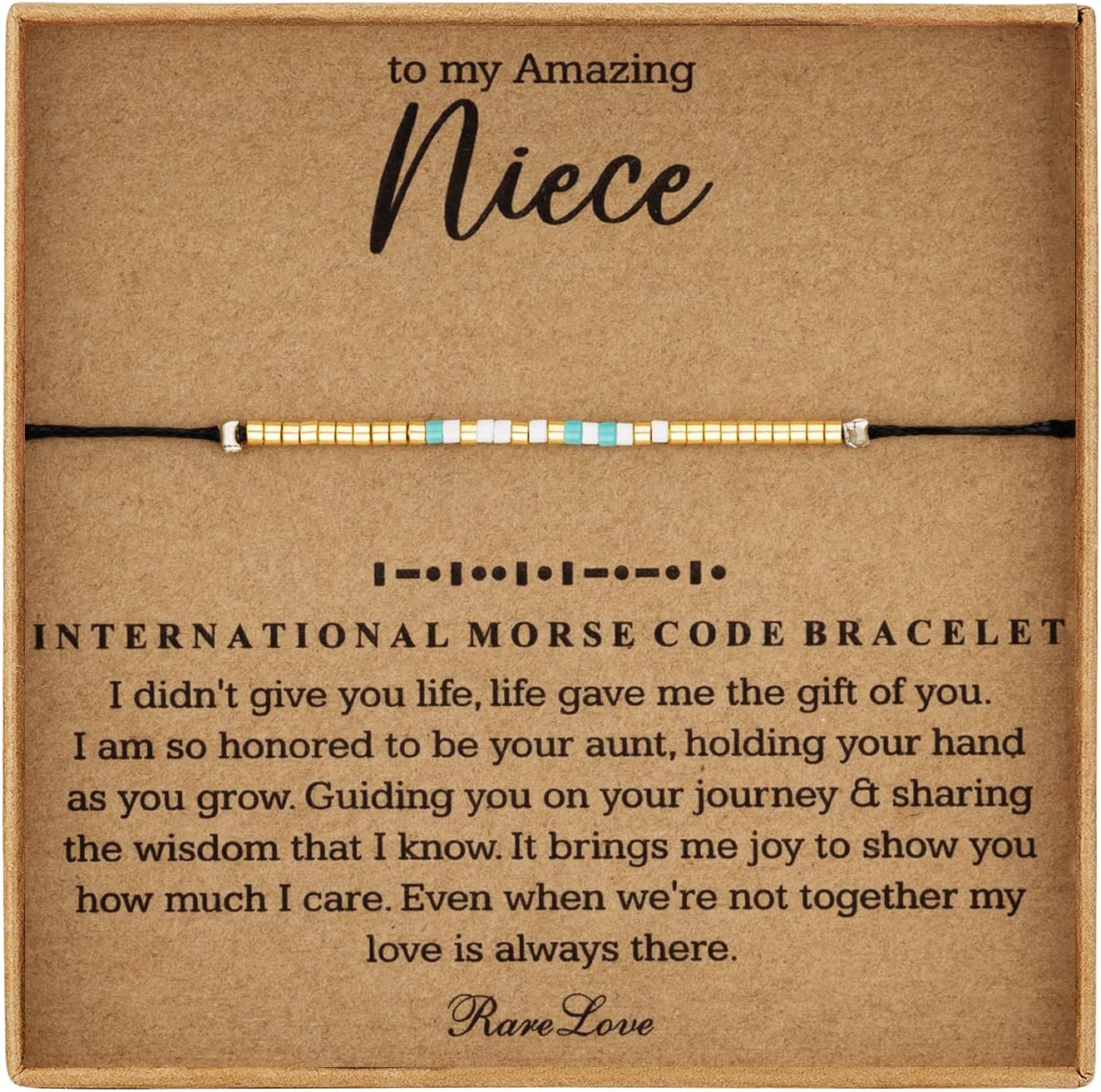 RareLove Niece Morse Code Beaded Bracelet Niece Gifts from Aunt Secret Message Jewelry Gift for Her, Waterproof Birthday Gift for Niece,Christmas Gift