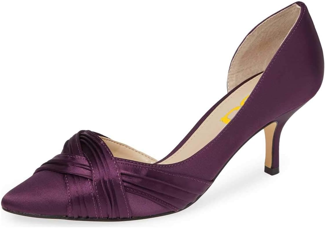 FSJ Women Low Kitten Heels Pointed Toe Slip on Pumps D'Orsay Pleated Satin Evening Party Dress Office Shoes Size 4-15 US