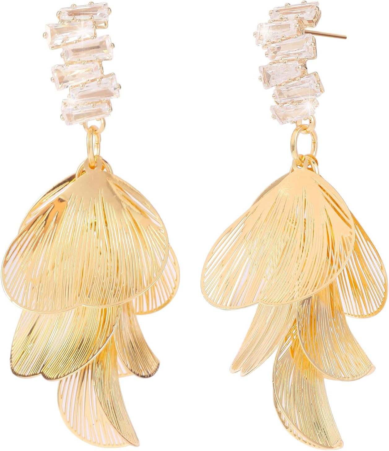 Gold Flower Earrings for Women Dangling Boho Floral Statement Dangle Earrings with Rhinestones for Prom Party