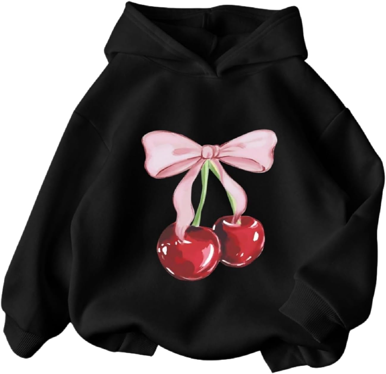 WDIRARA Girl's Cherry Graphic Hoodie Long Sleeve Hooded Sweatshirt Cute Pullovers Tops