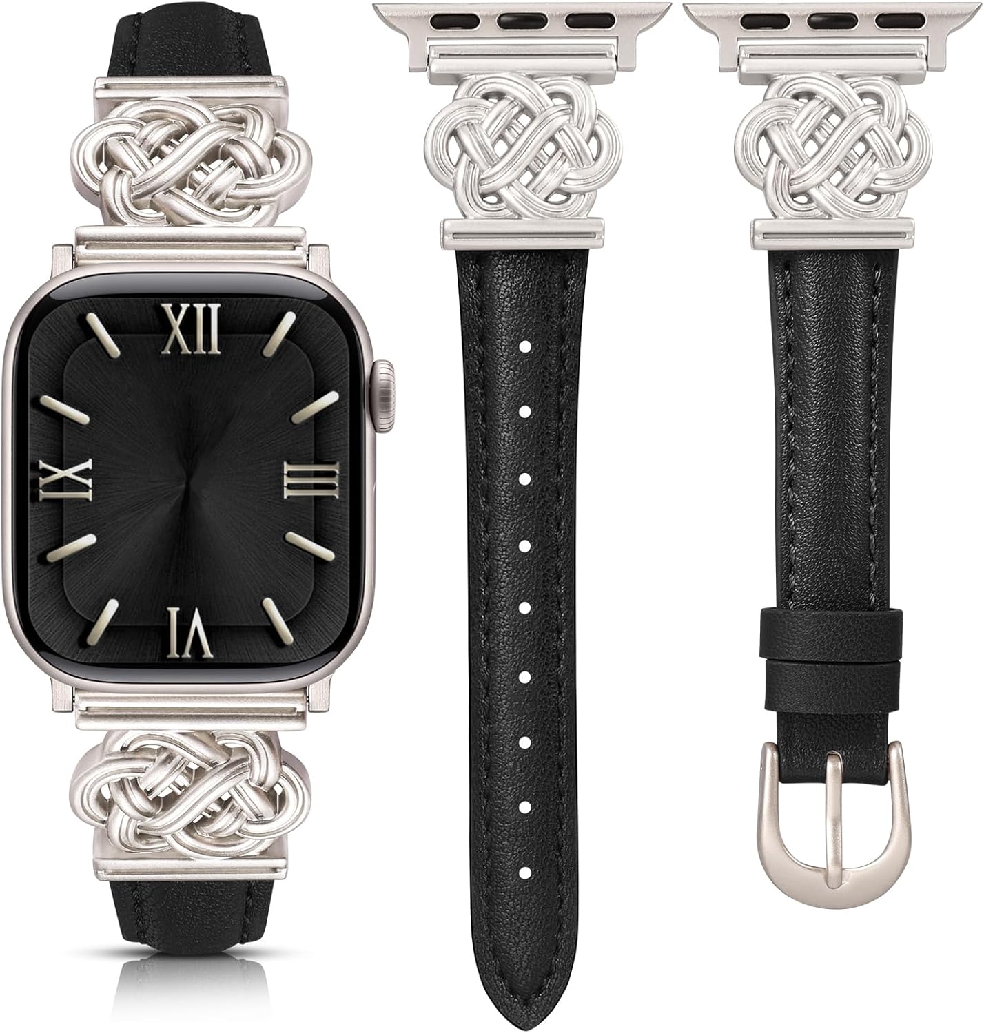 Minyee Celtic Knot Leather Band Compatible with Apple Watch Band 41/40/38/44/45/46/49/42mm Women, Slim Thin Dressy Premium Leather Adjustable Strap for iWatch Series 11 10 9 8 7 6 5 4 SE/Ultra 3 2 1