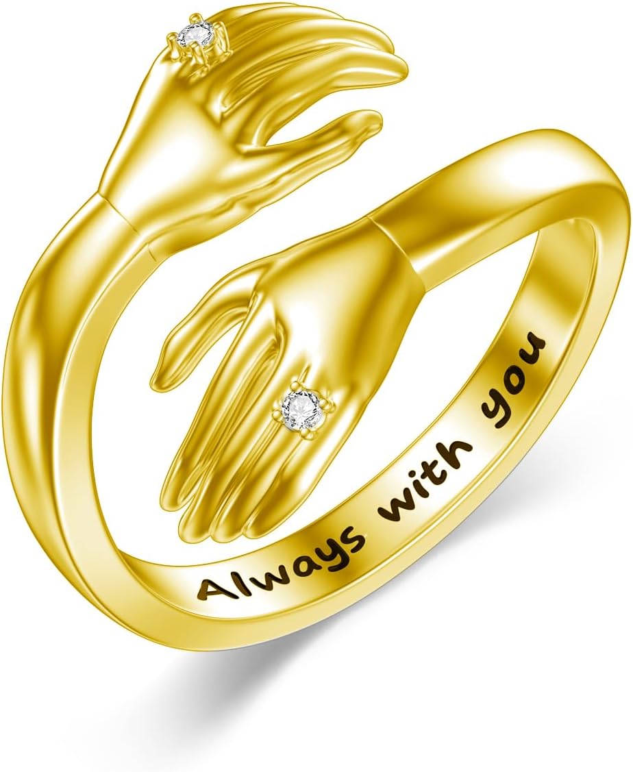 Diamond Hug Ring for Women 925 Sterling Silver Always With You Hug Rings with Lab Grown Diamond Jewelry Gifts for Loved Ones Adjustable Hug Rings