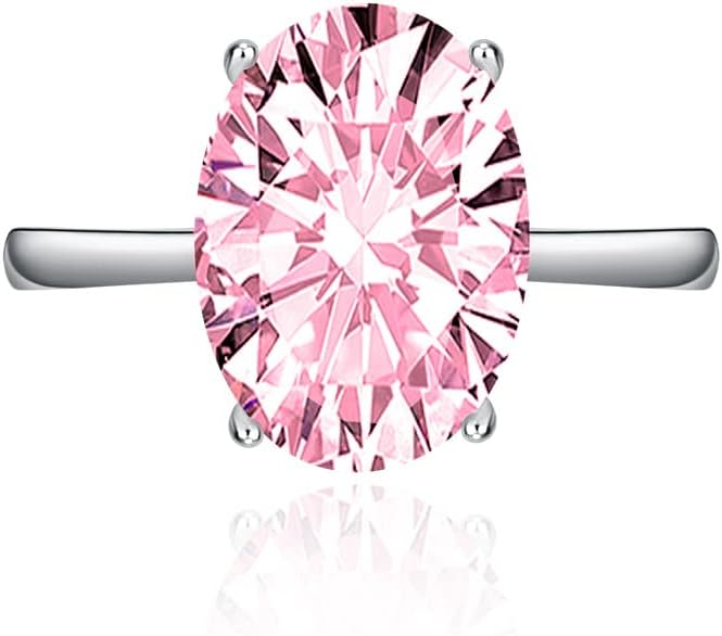 FLYYQMIAO 3CT 925 Sterling Silver Engagement Rings Oval Cut Solitaire Cubic Zirconia CZ Promise Adjustable Rings for Her Wedding Bands for Women Simulated Diamond Birthstone Open Rings(Pink)