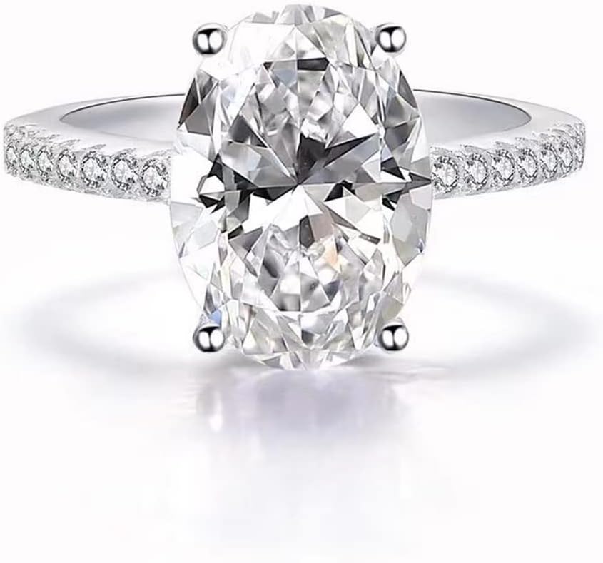 925 Sterling Silver Ring Oval Perfect Cut 3Ct Cubic Zirconia Rings CZ Eternity Engagement Wedding Band Ring for Women (US Code 6)