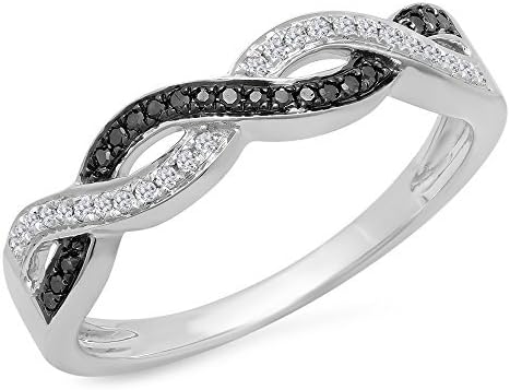 Dazzlingrock Collection Valentine's Day Gift 0.15 Ctw Round Black & White Natural Diamond Criss Cross Stackable Ring for Women in 925 Sterling Silver
