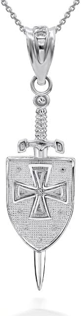 Claddagh Gold 3D Saint Michael Sword & Shield Cross Pendant Necklace 925 Sterling Silver