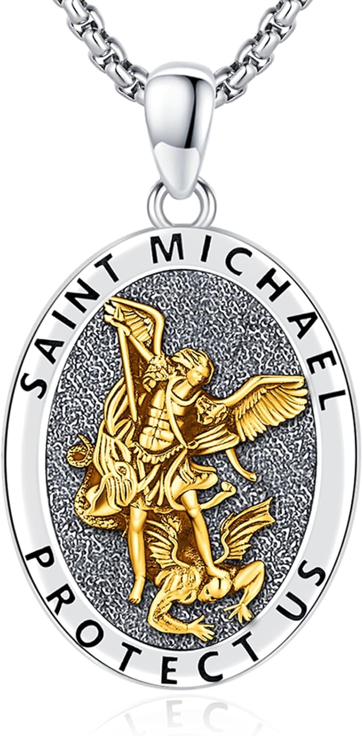 925 Sterling Silver St Michael/St Christopher/Virgin Mary Necklace Patron Saint Amulet Medal Jewelry for Men Women