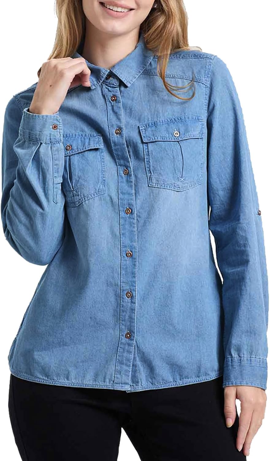 FASHIONSPARK Women's Denim Shirt Button Down Long Sleeve Tops Basic Jean Casual Shirts with Pockets