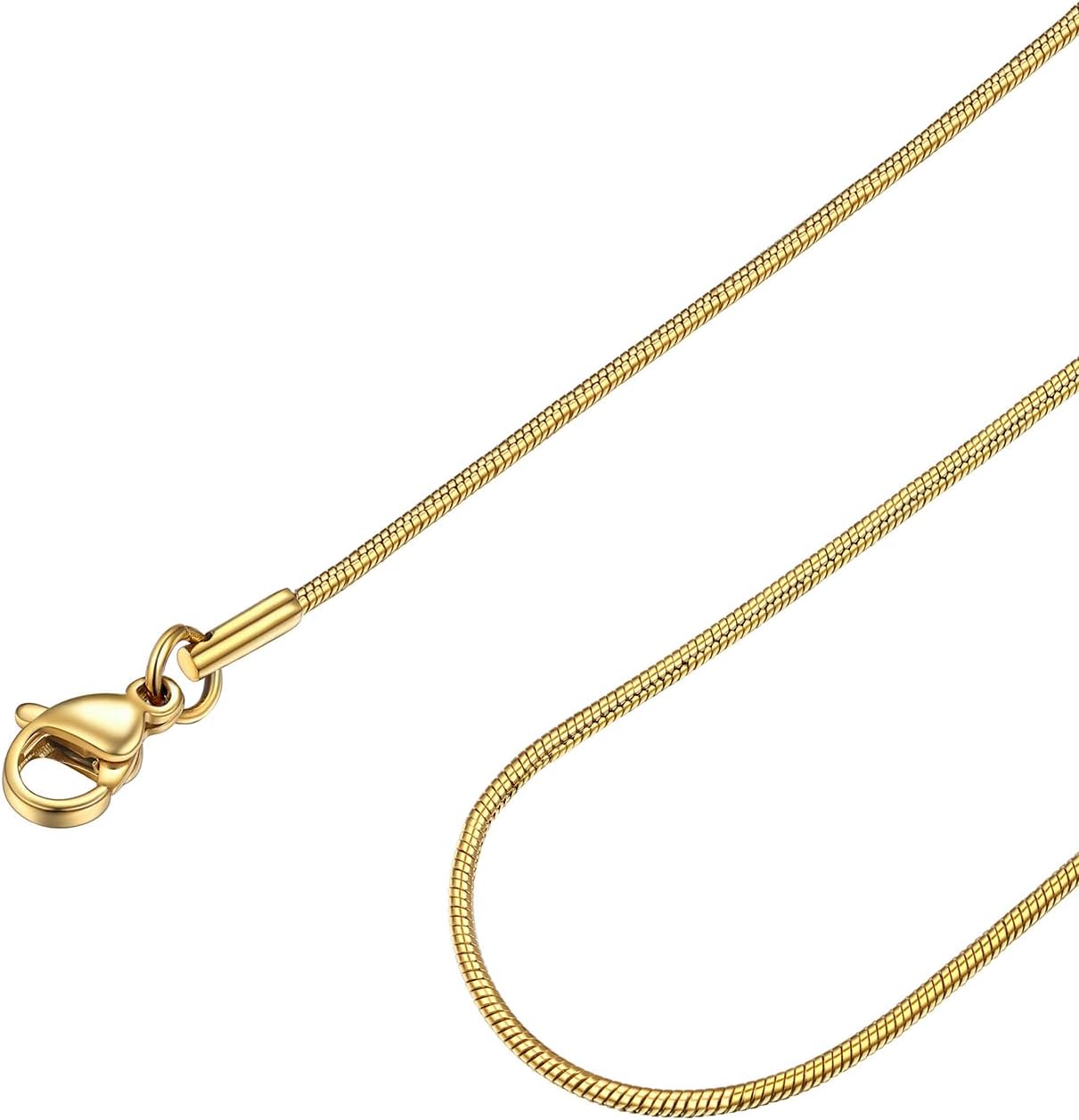 FOCALOOK Snake Chain Necklace Silver 14K Gold Plated Delicate 1mm 1.2mm 1.5mm 2mm Chains for Women, Hypoallergenic Minimalist Sturdy Necklaces Chains in 14 16 18 20 22 24 Inch