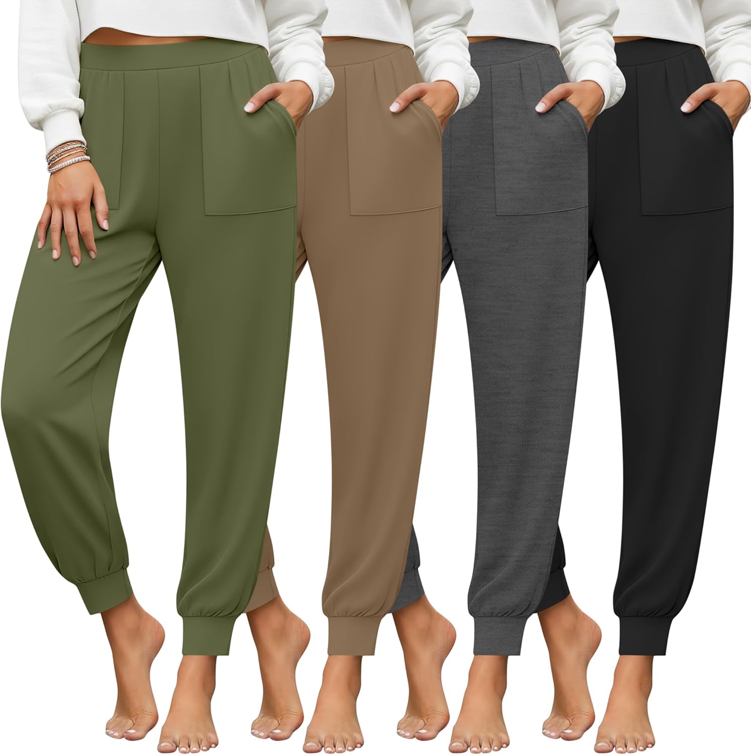 4 Pack Women's Yoga Joggers, Cozy Lounge Pants with Pockets Loose Casual Gym Athletic Sweatpants Comfy Cuffed Pants