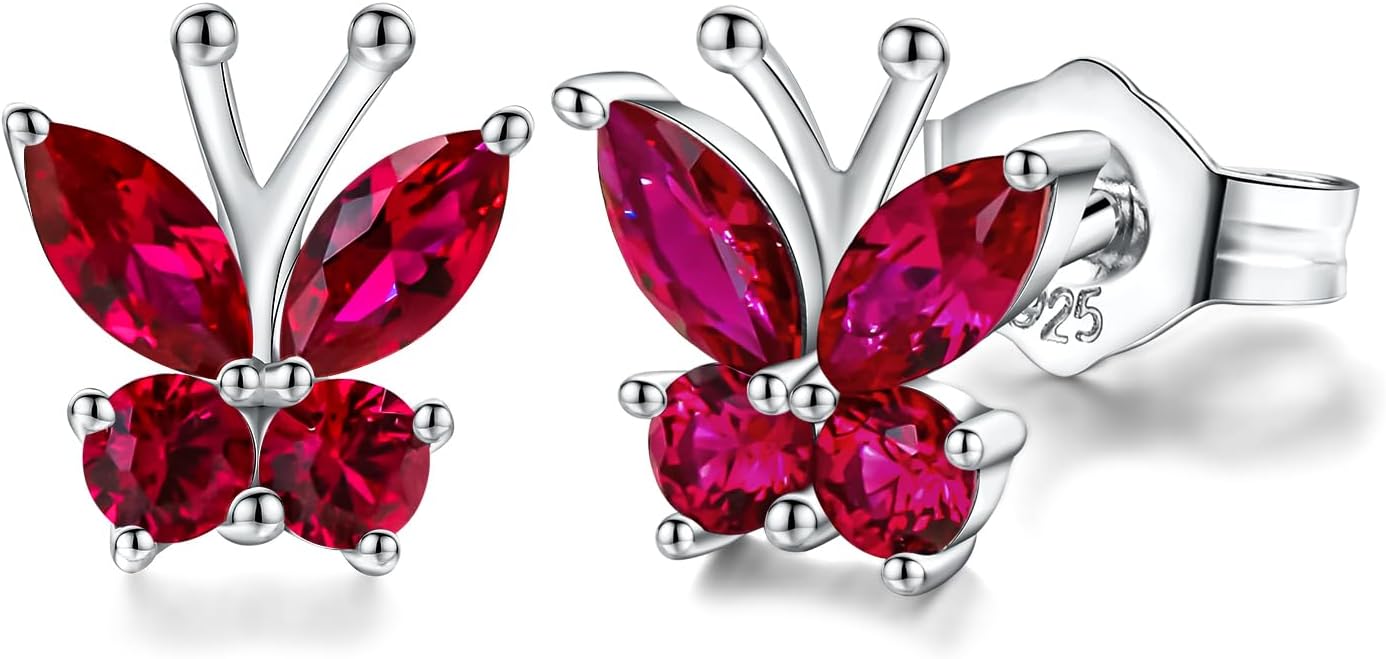 DAYBYDAY Butterfly Earrings 925 Sterling Silver Birthstone Earrings, Dainty Small Butterfly Stud Earrings for Women Birthstone Jewelry