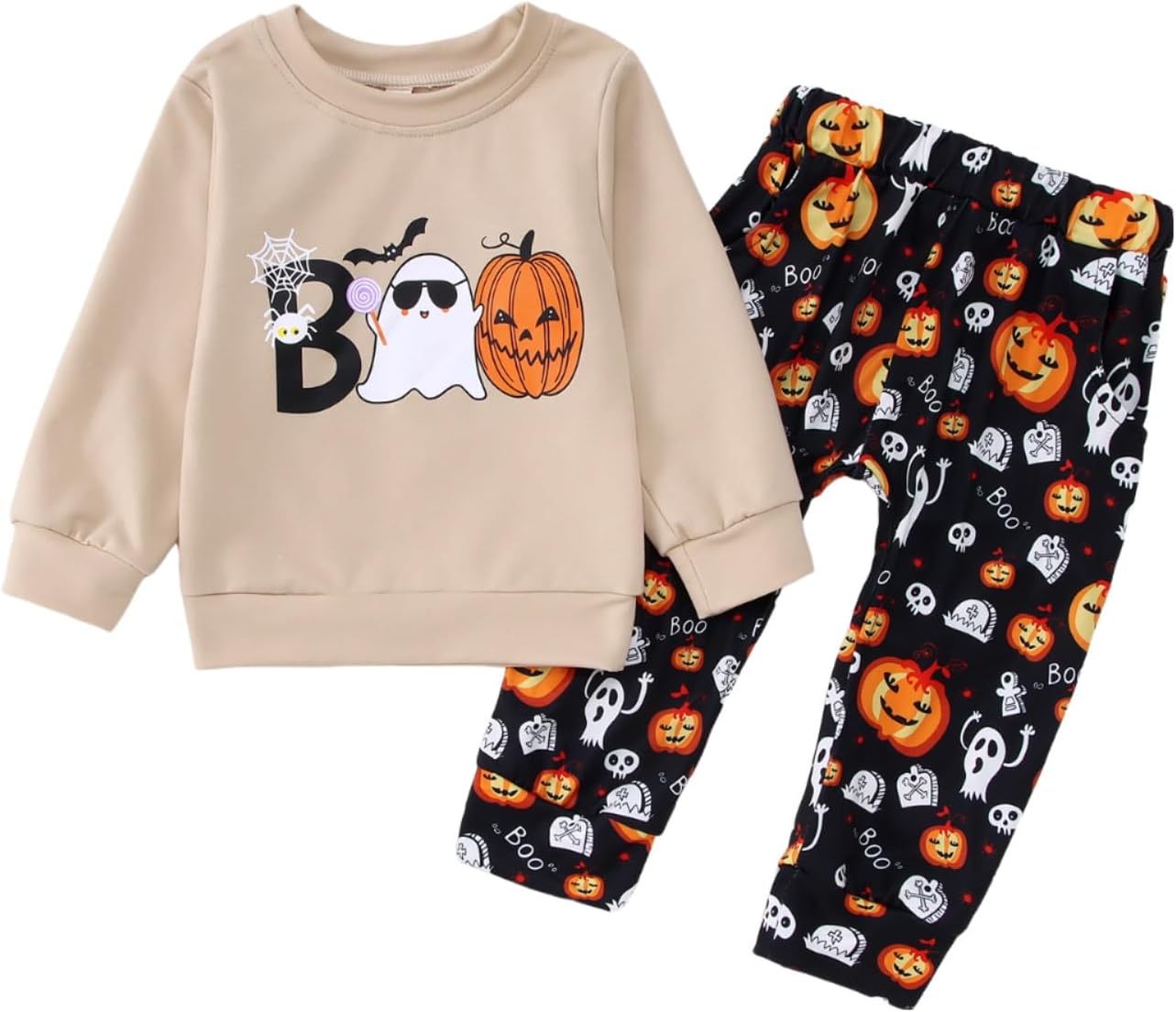Ritatte Toddler Baby Boys Halloween Outfit Pumpkin Ghost Boo Sweatshirt Top Pant 2Pcs Kids Fall Winter Clothes Set