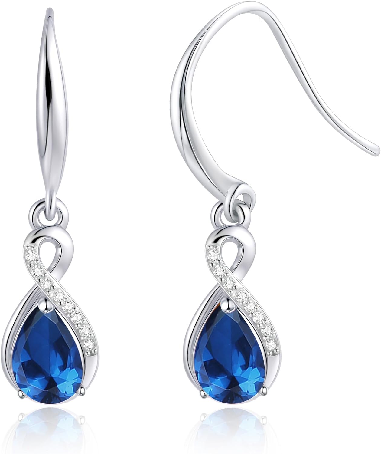 Infinity Birthstone Earrings 925 Sterling Silver Teardrop Infinity Drop Dangle Earrings Birthstone Jewelry Birthday Gifts for Women Her Mother Wife