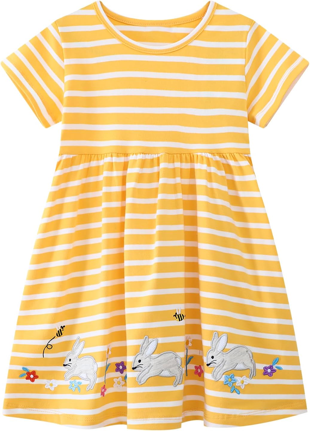 HILEELANG Toddler Girl Short Sleeve Easter Dress Cotton Casual Jersey Shirt Playwear Applique Dress
