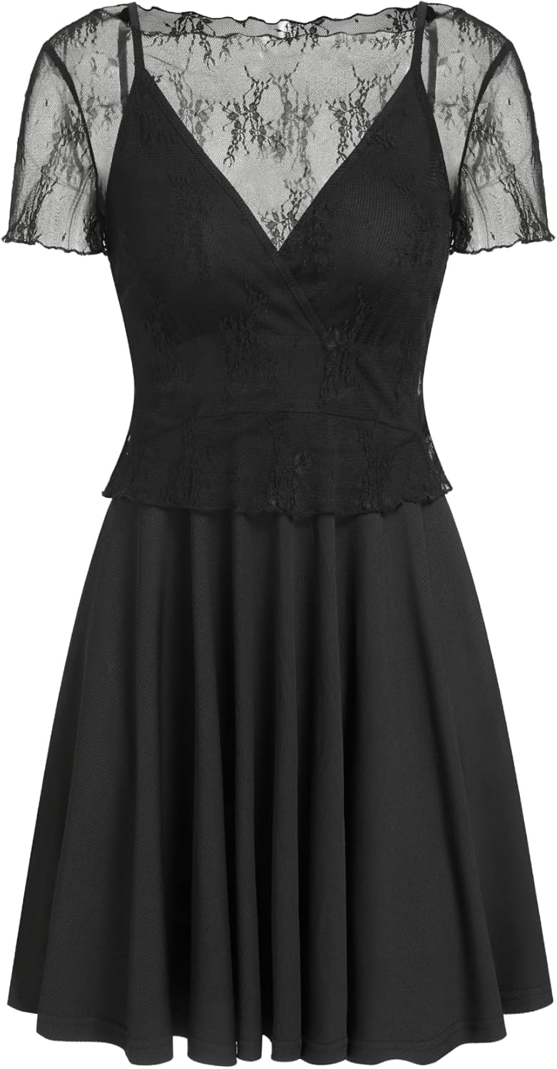 CIDER Womens Two Piece Outfits Lace Short Sleeve Tops and Spaghetti Strap Mini Dresses Summer Date Night Outfits