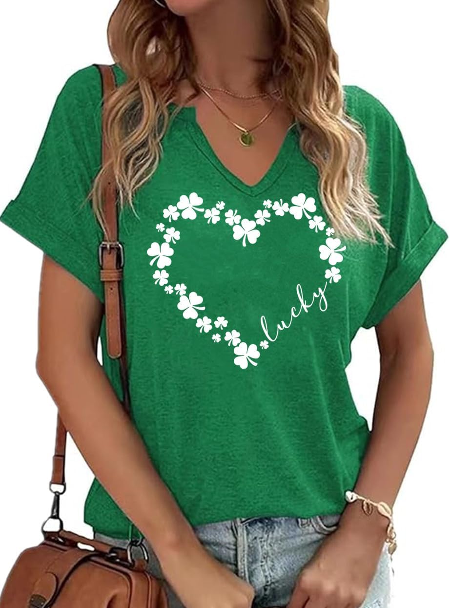 St. Patrick's Day Shirts Women V Neck Lucky Shamrock Clover T-Shirts Irish Festival Graphic Tee Tops