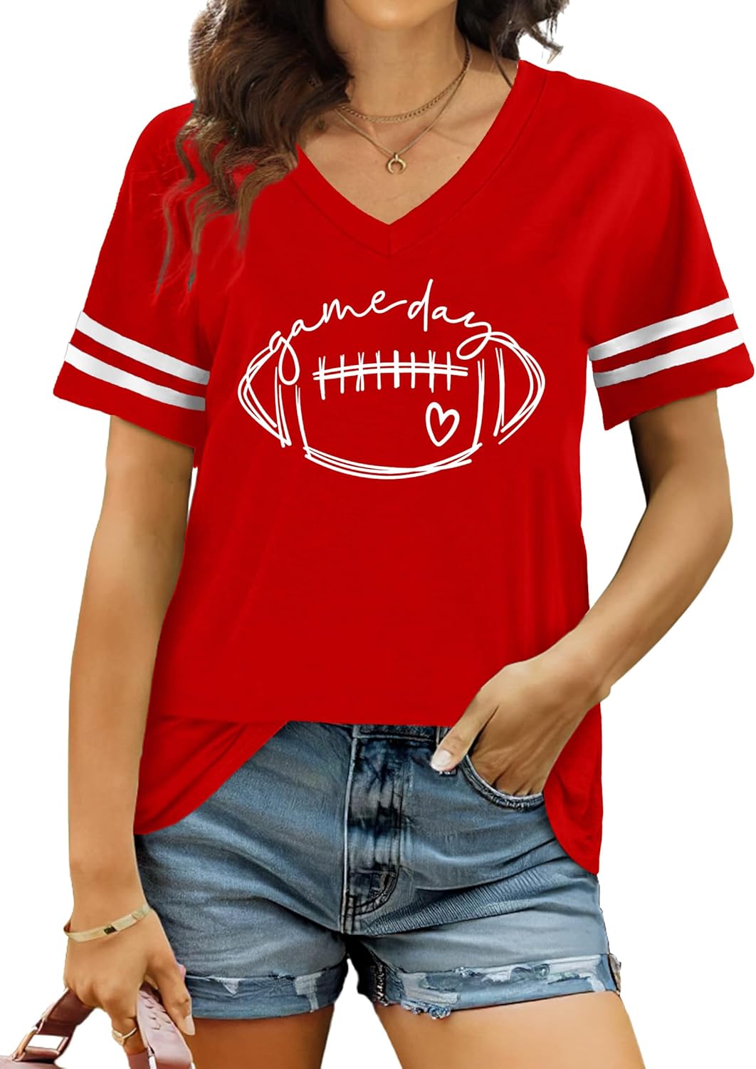 Football Shirts for Women: Game Day Tshirt Football Season Graphic Tee Sunday Funday Short Sleeve V Neck Top