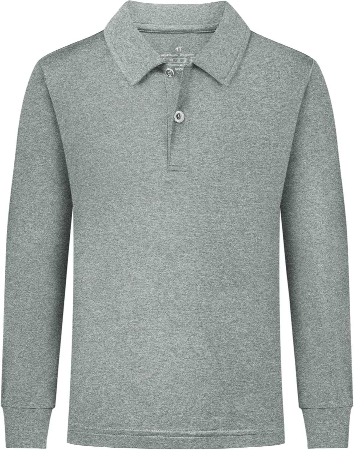 QBK Toddler to Youth Boys' Performance Golf Polo Kids Athletic Moisture Wicking Long Sleeve Shirts School Uniform