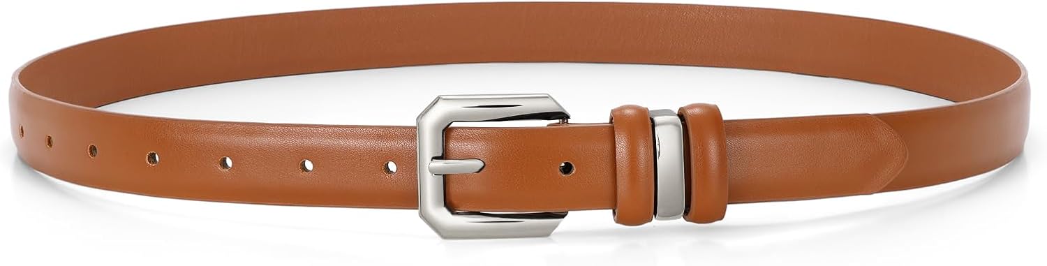 XZQTIVE Women Leather Belt for Jeans Pants Dresses Fashion Ladies Skinny Leather Belt with Silver Buckle