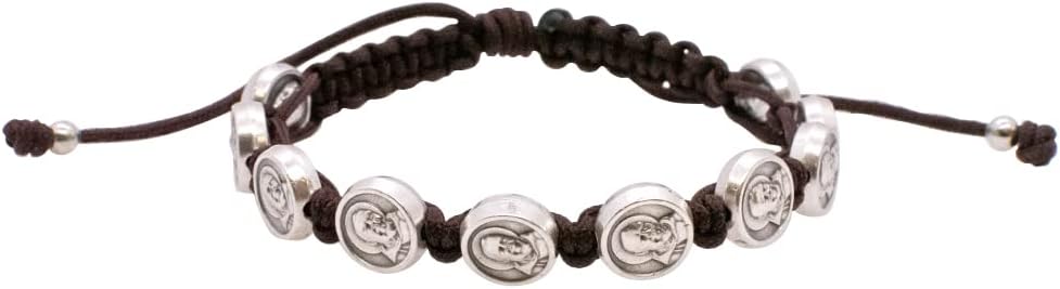 Saint Padre Pio Medal Bracelet on Woven Brown Cord | Adjustable | Patron Saint of Adolescents | Catholic Gift set| Great Catholic Gift for First Holy Communion and Confirmation