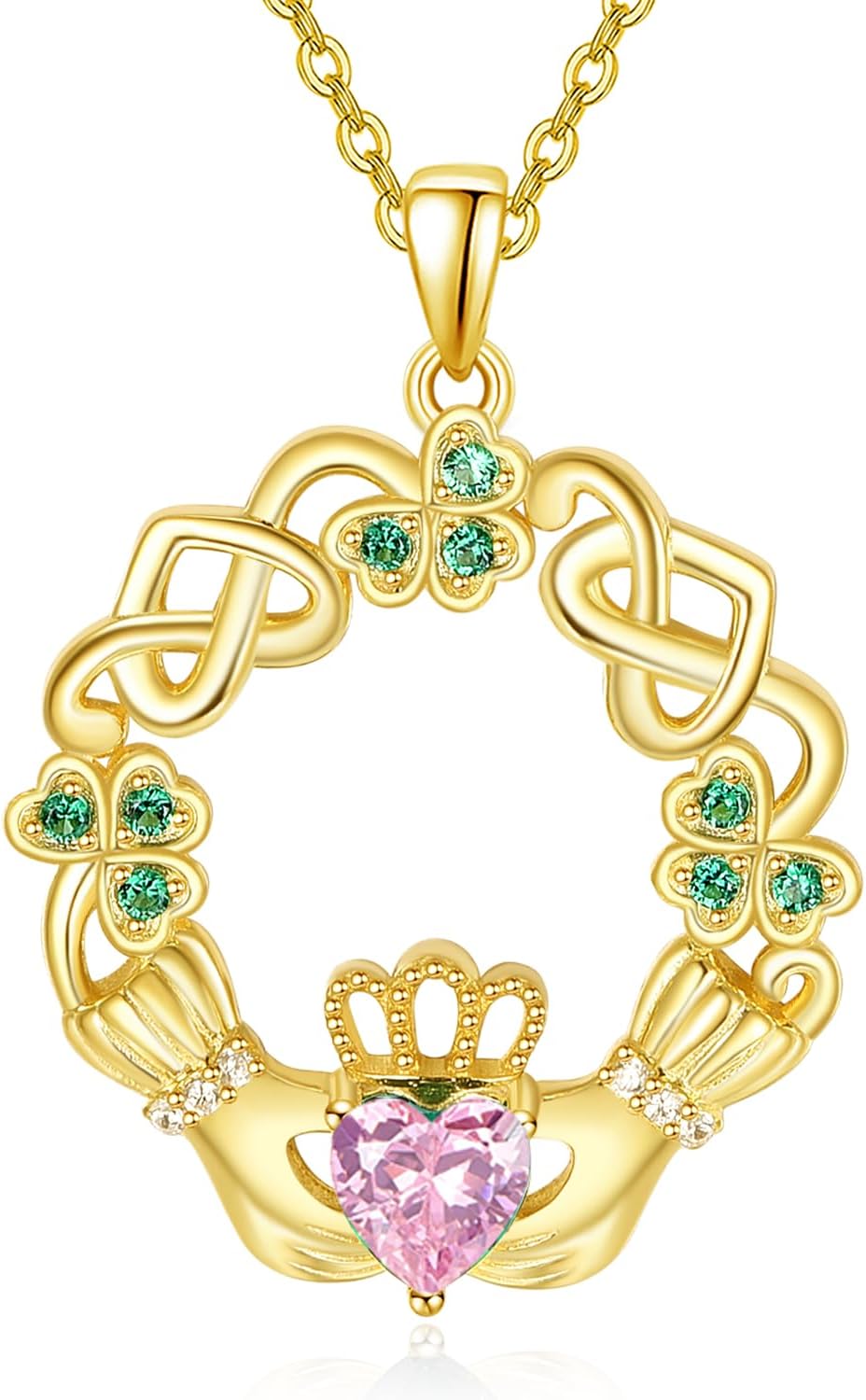 Dreamboat Sterling Silver Claddagh Necklace for Women Clover Shamrock Celtic Knot Irish Necklace Birthstone Pendant Luck Scottish Jewelry irish Gift