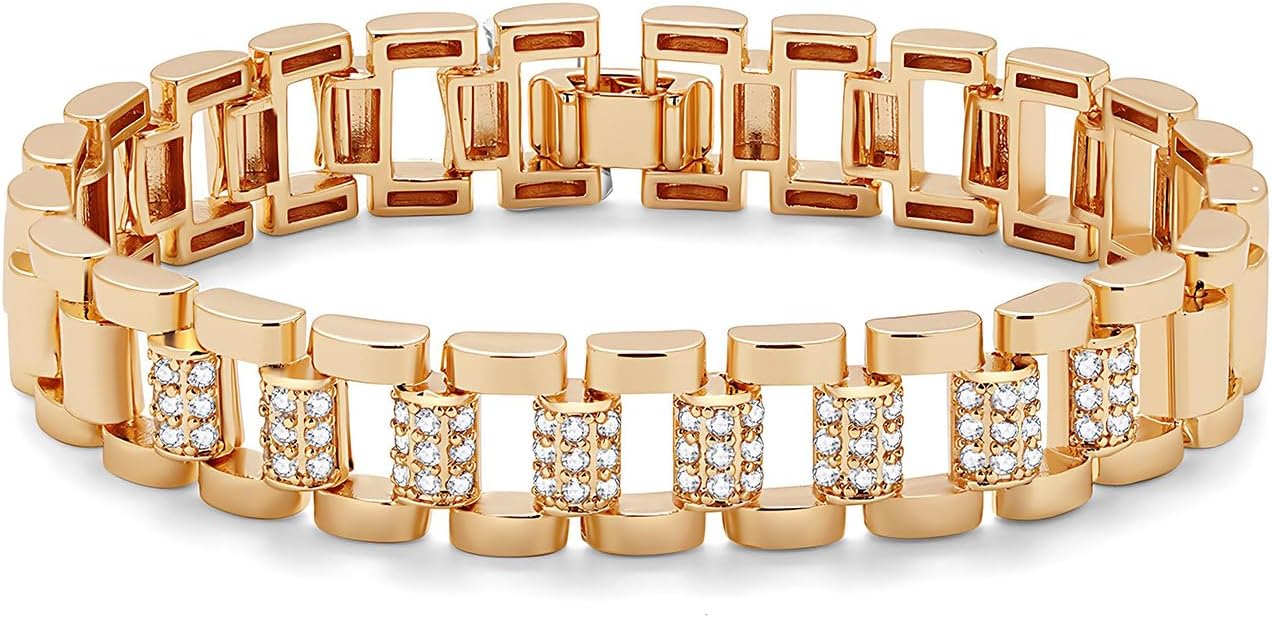Gold Plated Bracelet with Cubic Zirconia, Geometric Link Chain Jewelry for Women