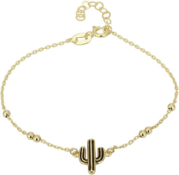 Vanbelle 18K Gold Plated Jewelry - Enamelled Cactus Bracelet in Beaded Chain - Beautifully Handcrafted Bracelet - Hand Bracelet for Women - 6.5" + 1" extender