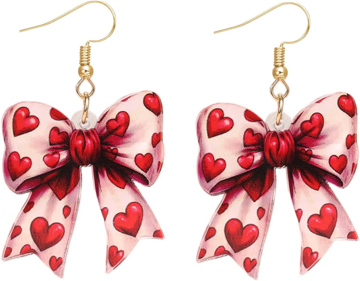 Valentines Earrings Leopard Bow Earrings for Women Red Heart Bow Earrings,Cute Bowknot Drop Earrings Valentines Outfits Accessories