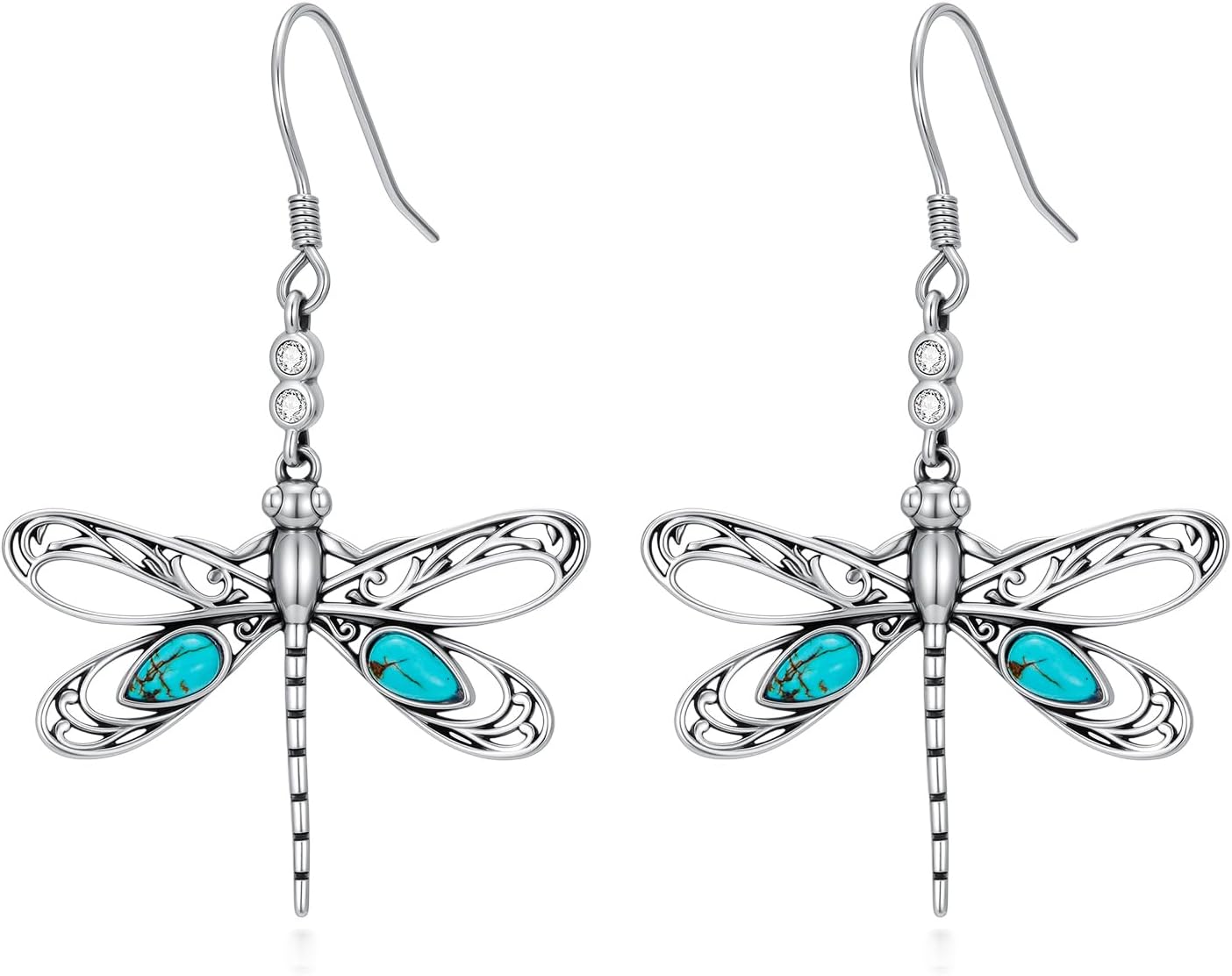 Genuine Turquoise Dragonfly Earrings, Sterling Silver Dainty Native American Western Teardrop Earrings Jewelry for Women