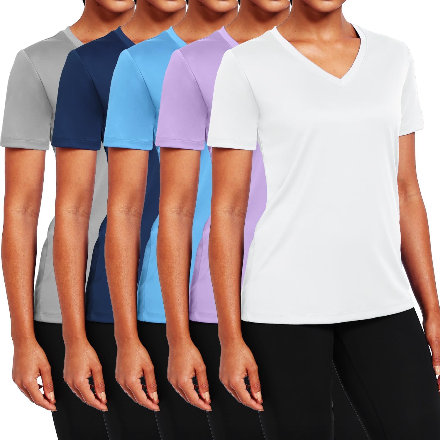 1-5 Pack Women's Short Sleeve Shirts UPF 50+ Sun Protection T-Shirts V Neck Workout Quick Dry Tops